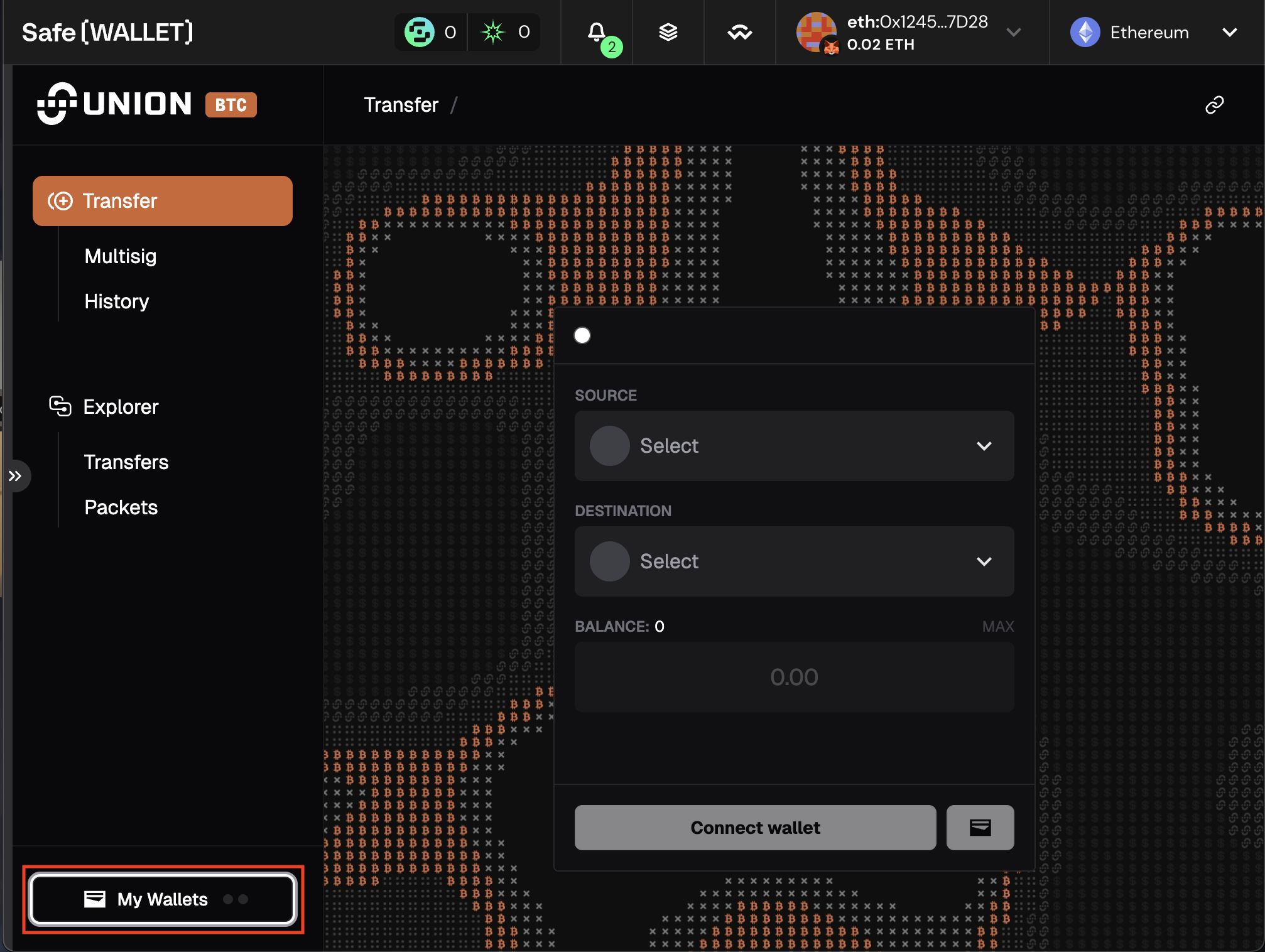 Once you have a multisig created, you can follow the steps below to conduct your transfer with https://btc.union.build.